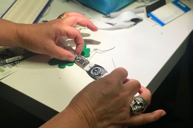 – Vi började med en snabb rundvisning för att alla skulle känna sig som hemma. Hyllorna är fulla med komponenter, sladdar och allt möjligt annat som kan användas i skapandet. Under workshopen var det bara att gräva och ta vad man behövde. Efteråt lades allt tillbaka igen för att kunna återanvändas och komma till nytta i andra projekt framöver.